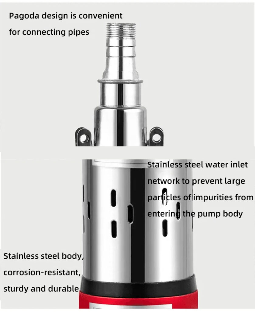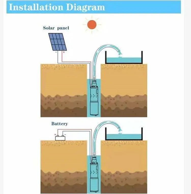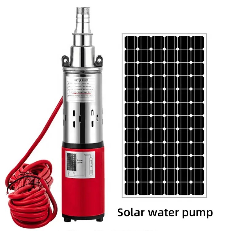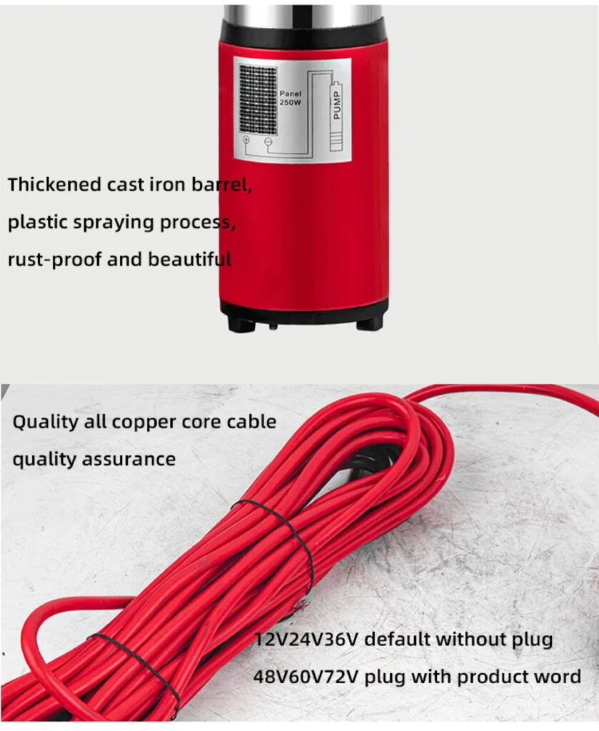 50-meter submersible DC solar water pump that has a capacity of 24 volts. With a solar panel of 250 Watts and float switch.